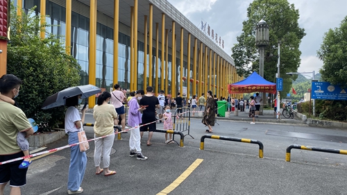 8月5日早上8時(shí)許,筆者在朝陽汽車站看到:從車站西門到迎賓西路一條150余米的“長(zhǎng)龍”間隔均勻,在隔離線內(nèi)有序排隊(duì)、慢慢往前挪動(dòng)著。這是益陽湘運(yùn)車站積極配合益陽市城區(qū)全民免費(fèi)核酸檢測(cè)工作的一個(gè)場(chǎng)景。