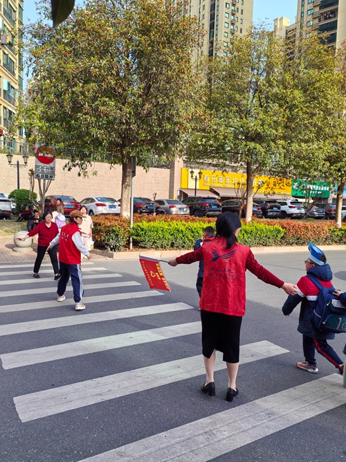 這是共青團益陽湘運投資控股股份有限公司委員會組織開展的“愛心護學(xué)”志愿服務(wù)活動場景。為落實共青團益陽市委“雷鋒家鄉(xiāng)學(xué)雷鋒”青年志愿服務(wù)活動精神,當(dāng)天,公司團委書記曹賽姣組織了9名團員青年化身為“安全宣傳員”,向過往行人和學(xué)生宣傳交通安全知識,提醒做好自身防護。(曹賽姣 鄧玉姬)