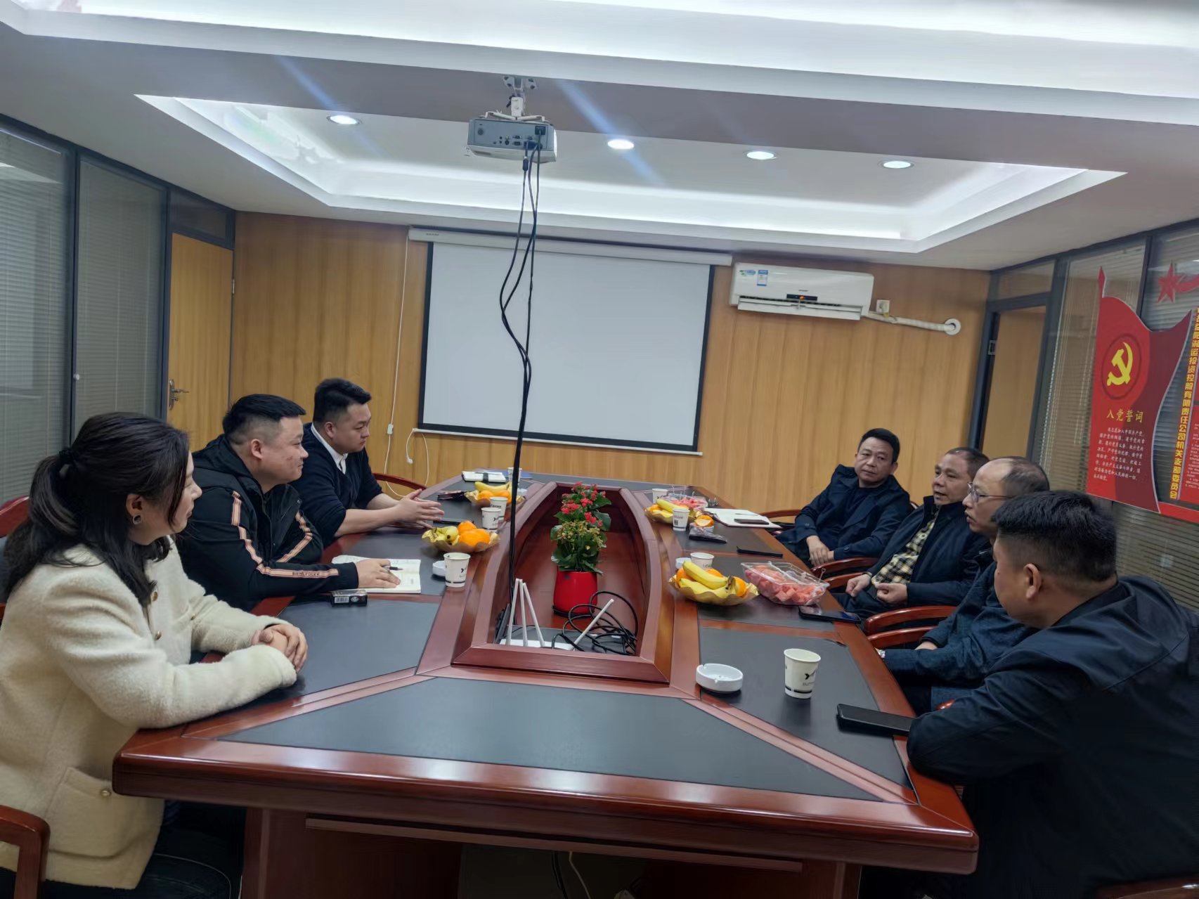 3月20日上午,大通湖區(qū)副區(qū)長皮光輝帶領(lǐng)區(qū)辦副主任王祥、大通湖區(qū)交通運(yùn)輸局局長向桂華、大通湖區(qū)公路建設(shè)養(yǎng)護(hù)中心主任樊克儉一行4人,到湖南遠(yuǎn)程建設(shè)集團(tuán)有限公司指導(dǎo)工作。公司總經(jīng)理周琦順、副總經(jīng)理鐘盛、石蕾陪同。
